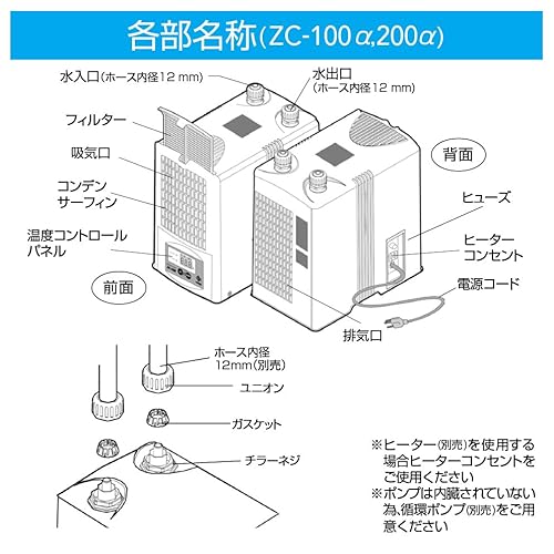 クーラーは外部フィルターに追加する装置で大掛かりで高価です。一般人は高級魚でもないかぎり使わないと思います。