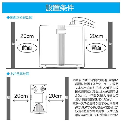 水槽の水温を下げる装置としてはクーラーとファンがあります。