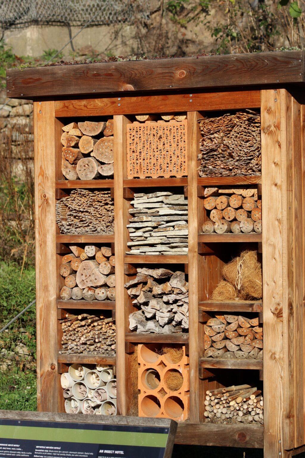- バグホテル(インセクトホテル、インセクトハウスとも呼ばれる)は、人間が作った昆虫のための避難所。