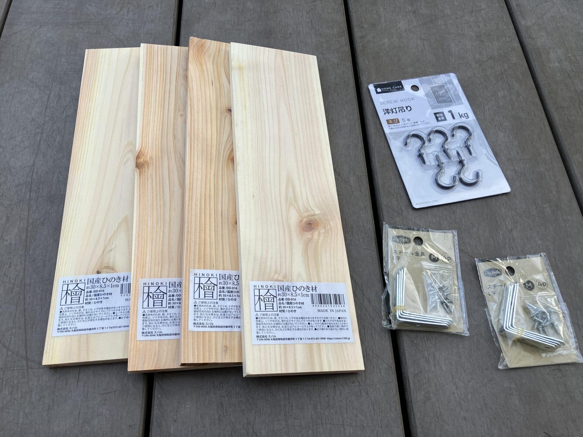 - 檜の板×4 30㎝×8.5㎝×1㎝