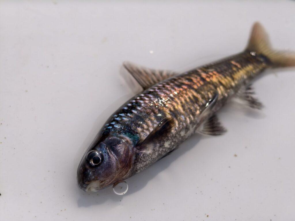 去年チクシブチの成体を見つけた近くの別の沢が楽園。沢を遡るごとに次々と発見してとっても興奮した。これだけ密度があれば産卵の瞬間とか見えるのかもと思ったけど、卵塊も発見できず。岩の下なのかな。岩はめくらなかったので。