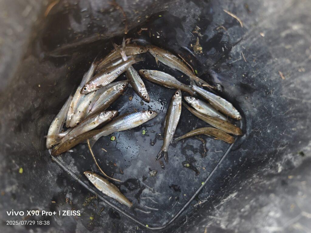 セボシタビラは国内希少種で捕獲が出来ないのでカメラを沈めて撮影しました。この場所は数年前からセボシを見ている所でしたが、まともな写真を撮って無かったのでチャレンジしました。川の上から見ると鰭の白いのがちらちら見えるのでセボシとわかります。遊泳力がありビュンビュン泳いでいました。