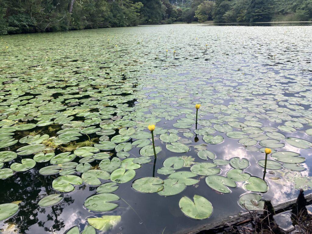 山の池で見たオグラコウホネ。本当は栗を拾いに行ったんだけど、時期が早くほとんど獲れず