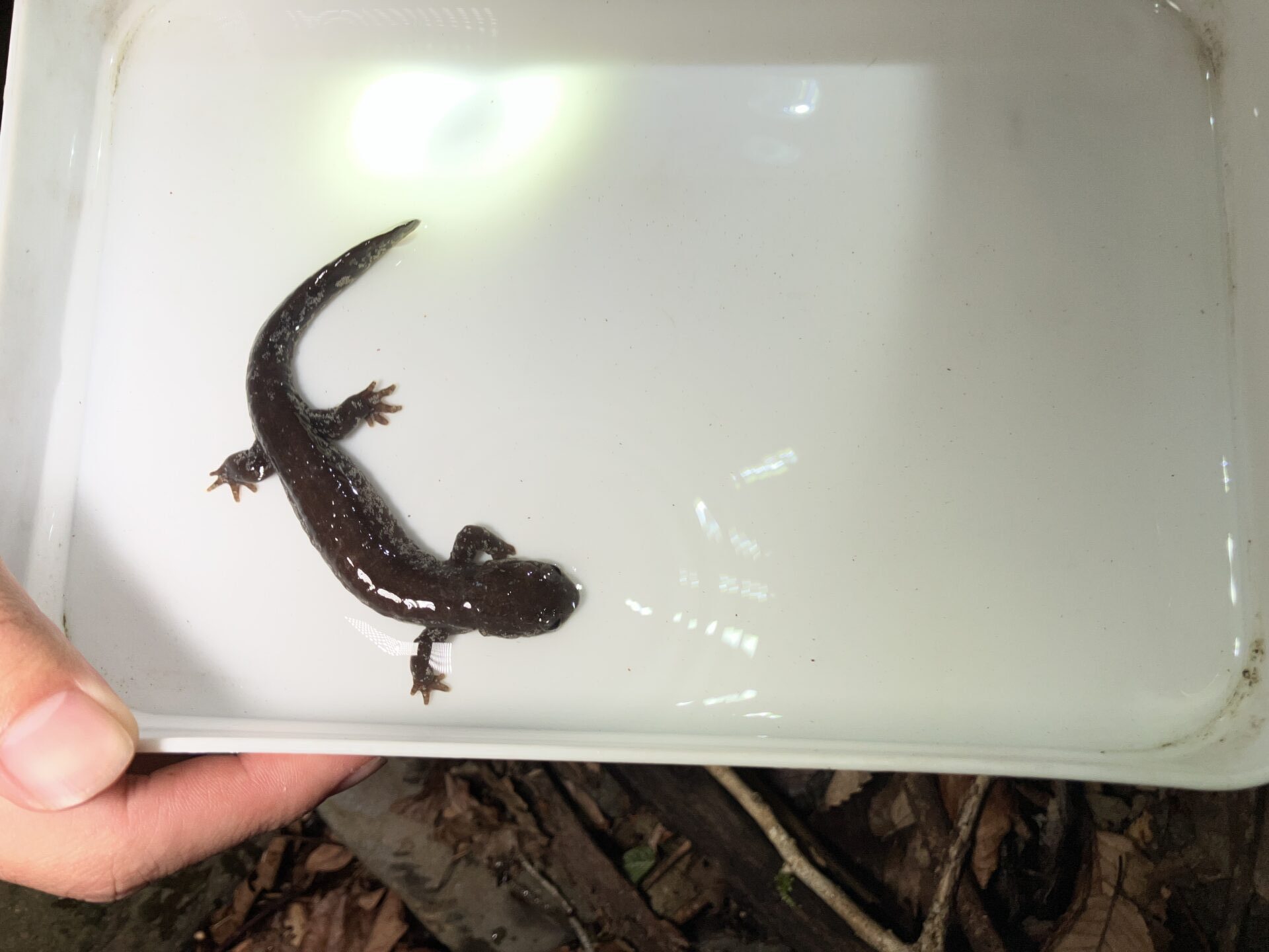 こんな山奥まで来て一匹も見つからなかったら嫌だなぁと思いつつ、サンショウウオ探しはそういうもんだし、それでもまあいいかと思ってたら見れた。